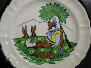 Here are some more "mountain people" plates from Alessandra…and a few from Calvello as well. (I have a "thing" for handpainted pottery). It is amusing to see the funny scenes of the hunters, isn't it? I can imagine these scenes happening in the mountains of Calvello.