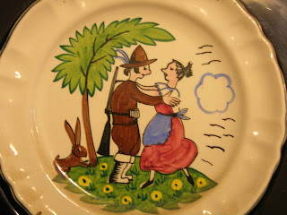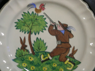 Here are some more "mountain people" plates from Alessandra…and a few from Calvello as well. (I have a "thing" for handpainted pottery). It is amusing to see the funny scenes of the hunters, isn't it? I can imagine these scenes happening in the mountains of Calvello.