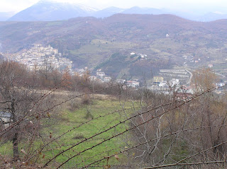 It is incredibly beautiful… snowcapped mountains from Calvello to Naples, to Rome… green fields (probably they get more brown in the summer)… bright green from all the recent rain. Lush and lovely.