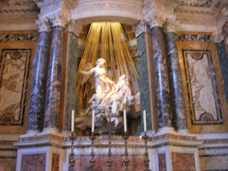 Anyway, I eventually found a taxi and we got there in the nick of time. The first thing we can tell is the guide is over-the-top dramatic. He says he’s sticking to the book, not the movie which changed things unnecessarily. And he also tells us not to be disappointed but basically, all of the "trail of the illuminati" is poetic license by Dan Brown but that the places we will see are interesting. Also, that the Vatican was upset by the book and did some strange things after the book came out. Like cover up statues and carvings underneath statues... and prohibit filming the movie in churches... and they won’t let this particular tour guide into certain places.. like the Pantheon. Don’t know if its true, but it added to our adventure.