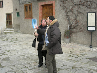 After colazione all'albergo, (breakfast at the hotel...of café and rich filled cornuto (croisants)), we walked into the square and there was Vincenzo DiGrazia waiting for us. First, we asked where to buy ceramiche but it was chiuso… so he invited us for café, while he called the proprietero of the negozio di ceramiche. It will be open in the pommeriggio… at 5pm! I can do real damage to my credit card here!. Then Vincenzo took us to the municipo archivii. The man that I had written to (who Herman Tak and Lucio Ferri told me to speak to), was on vacation. But a woman there showed us the register where our great-grandfather was born. No new information except that our great great grandparents were contadini (owned and farmed their own land). I asked about the carbonari but the records don't go back that far. (maybe I can find more at home in the LDS records).