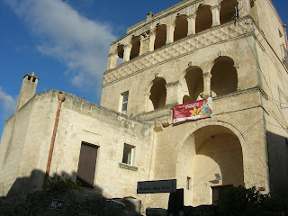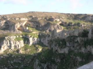 By the 1950's they had evicted people from the Sassi, and had built other "project" style apartments in the main city. The main city is ugly... Margaret said it was worse than Mexico. But then, suddenly we drove into the Sassi district which is magnificant. There are several "real" churches and also the very old churches, restaurants, b&b's, residences, and there are still many many buildings which have not been rehabilitated.
