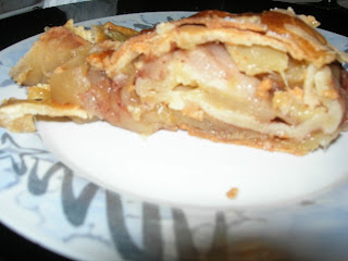Once she dropped something and said "Signor Beneditto" under her breath. (Mr. Saint Benedict?) When she was done rolling it out, we filled it with apples (which I did help peel), and a pear… and she rolled it up together. Finally she says. " Questa e il partito molto difficule" and she crosses herself and puts her hand in prayer. "Signor Christo, mi aiuta per favore" (Jesus please help me). We also made an orzo soup and a yummy casserole with riced potatoes layered with cheese and prosciutto… I had to have second helpings on that. MMMM.